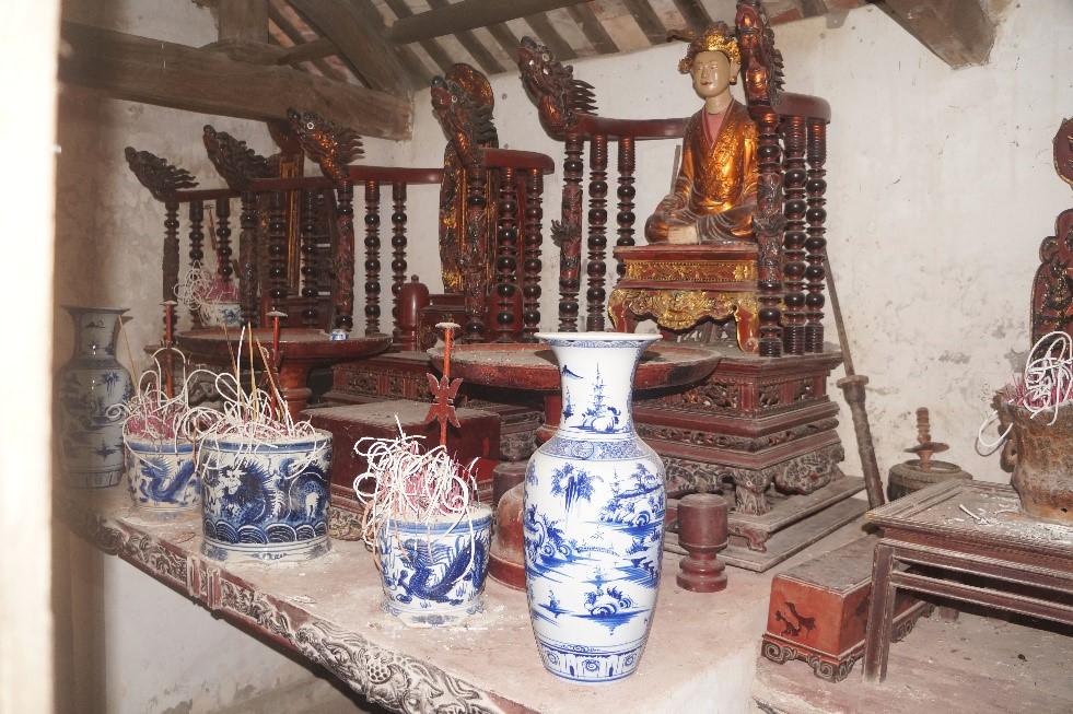 Tượng thờ Minh Bảo phu nhân và bài vị Nhật Chiêu hoàng tử và các vị thành hoàng miếu Cầu Công.