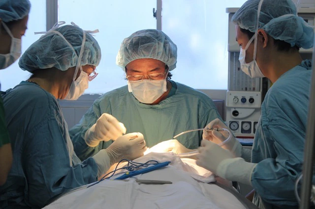 Một ca phẫu thuật cho trẻ bị dị tật khe hở môi - vòm miệng . Ảnh: Lê Phương