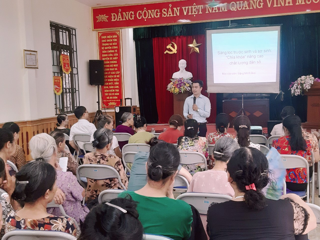 Thực hiện Kế hoạch số 534/KH-SYT ngày 12/4/2023 của Sở Y tế về việc thực hiện Chương trình mở rộng tầm soát, chẩn đoán, điều trị một số bệnh, tật trước sinh và sơ sinh tỉnh Hưng Yên đến năm 2030; Từ ngày 09/8 đến ngày 30/8 Chi cục Dân số - Kế hoạch hóa gia đình tỉnh đã tổ chức 30 hội nghị truyền thông, tư vấn về Chương trình mở rộng tầm soát, chẩn đoán, điều trị một số bệnh, tật trước sinh và sơ sinh năm 2023 cho trên 1800 đại biểu là cán bộ các ban, ngành đoàn thể, người dân trên địa bàn 30 xã,