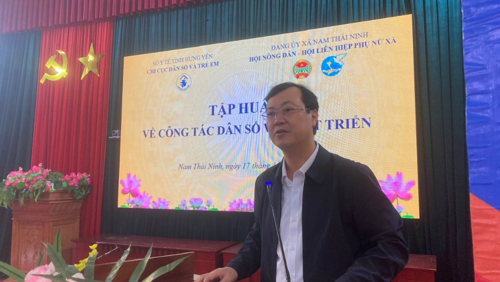Tham dự và chỉ đạo lớp tập huấn có đồng chí Nguyễn Thị Vân - Phó Chi cục trưởng Chi cục Dân số và Trẻ em tỉnh Hưng Yên; đồng chí Trần Trọng Tuyến - Phó Bí thư Thường trực Đảng ủy xã Nam Thái Ninh; cùng các đồng chí lãnh đạo, cán bộ Chi cục Dân số và Trẻ em tỉnh. Về phía địa phương có đại diện Ủy ban Mặt trận Tổ quốc Việt Nam xã, Hội Nông dân, Hội Liên hiệp Phụ nữ, Trạm Y tế xã và các học viên là Ủy viên Ban Chấp hành Chi hội Phụ nữ, Chi hội Nông dân các thôn trên địa bàn.