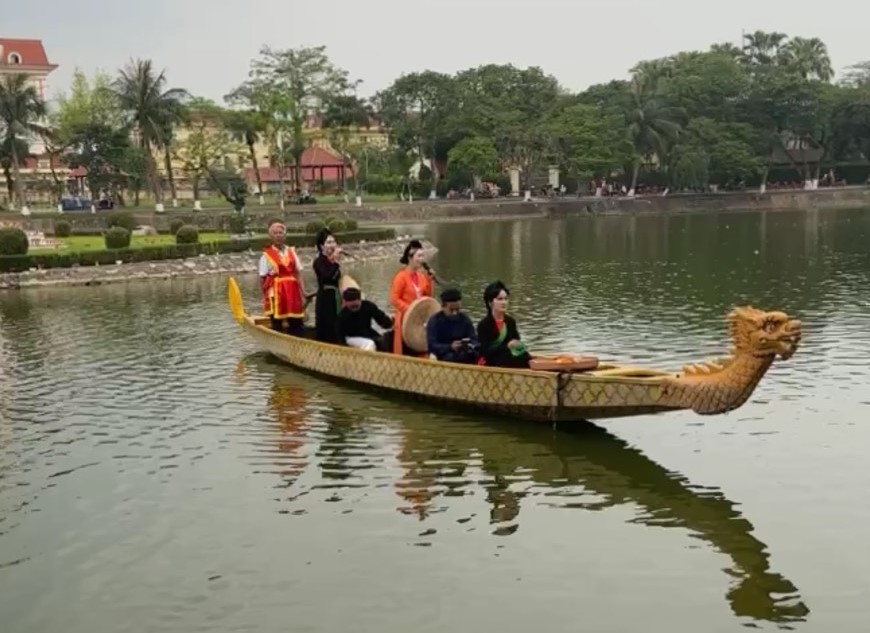 Chương trình hát giao duyên diễn ra vào chiều ngày 26/4 tại Hồ Bán Nguyệt đã mang đến không gian văn hóa đậm chất trữ tình. Những làn điệu mượt mà, sâu lắng được thể hiện qua hình thức đối đáp giữa các liền anh, liền chị. Nội dung lời ca gần gũi với đời sống, thể hiện tình cảm chân thành, tinh tế của người dân vùng đồng bằng Bắc Bộ. Người xem không chỉ thưởng thức âm nhạc mà còn cảm nhận được nét đẹp trong giao tiếp văn hóa truyền thống. Đây là hoạt động góp phần gìn giữ và phát huy giá trị của loại hình dân ca đặc sắc.