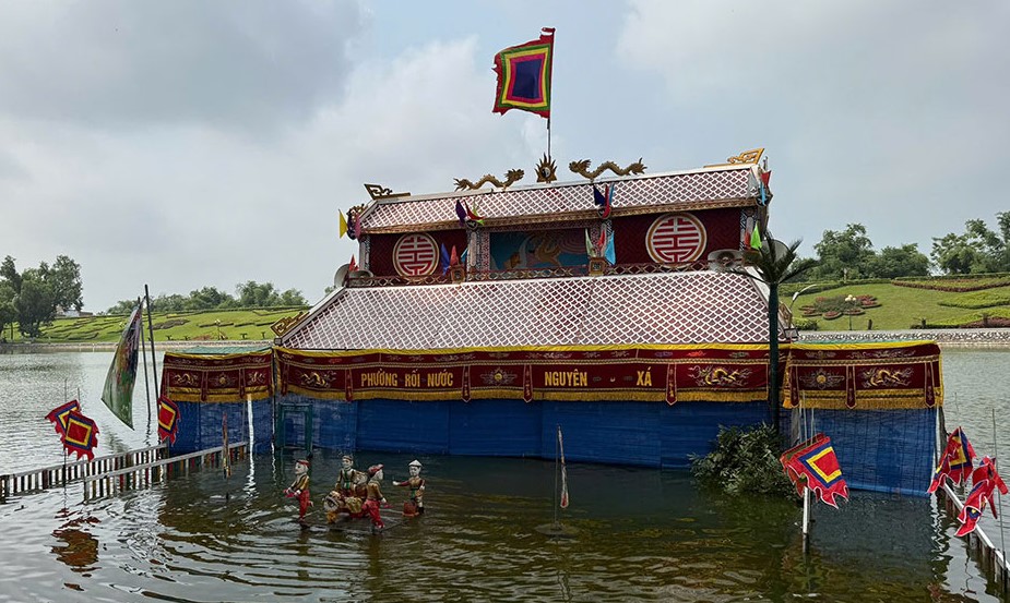 Tiết mục biểu diễn của phường rối nước Nguyên Xá