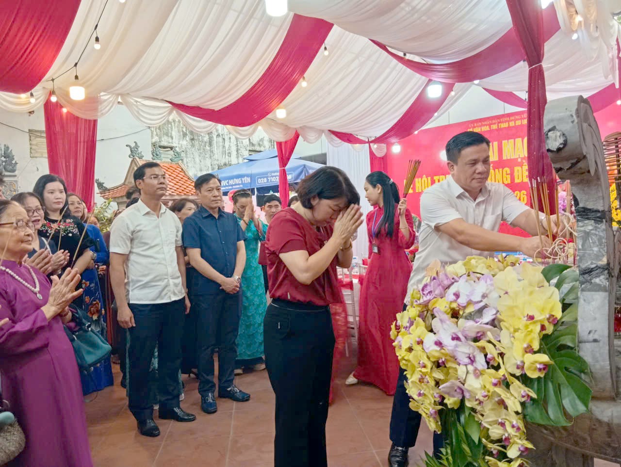 Dự buổi lễ có đồng chí Nguyễn Anh Tuấn, Phó Giám đốc Sở Văn hóa, Thể thao và Du lịch; đồng chí Nguyễn Thị Thu Hường, Giám đốc Ban Quản lý di tích tỉnh; Lãnh đạo các phòng, ban chuyên môn thuộc Sở; Các đồng chí thường trực Đảng ủy, HĐND, UBND, UBMTTQVN phường Phố Hiến; cùng đông đảo Nhân dân và quý khách thập phương.